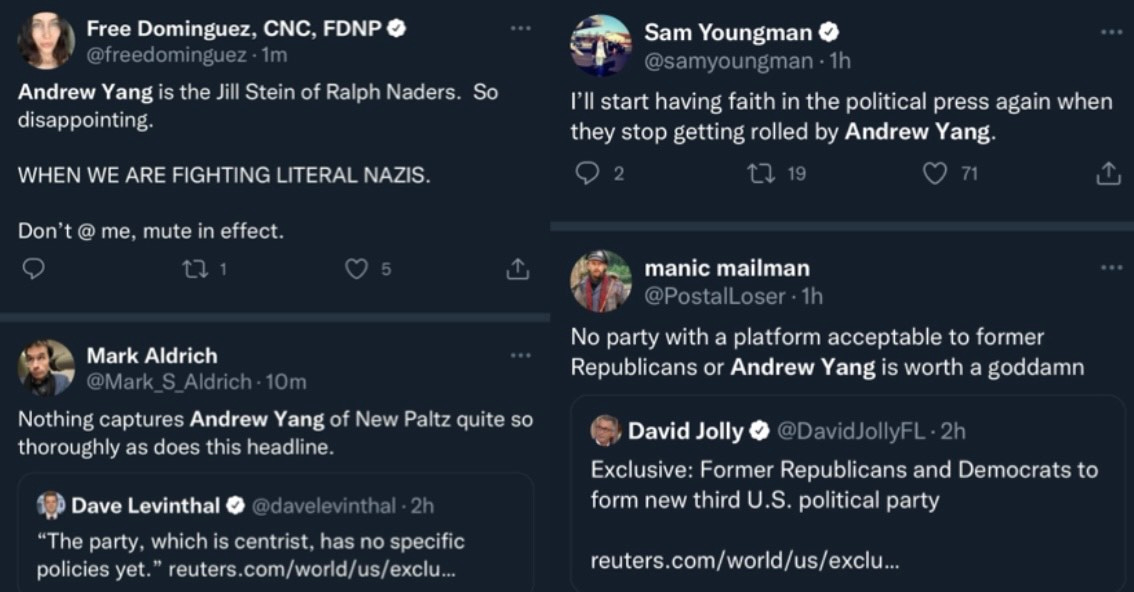 The year 2022 was a challenging one for me. I turned 50, I broke a bone for the first time in my life, and I joined the Forward Party. Well, “joined” is a bit strong. “Was forced into” is closer to the mark. I didn’t really have a choice. I was part of the comms team at the Renew America Movement (RAM), and in July of that year, RAM and the Serve America Movement (also known as the SAM Party) merged into Forward. The party had been founded the year before by former presidential and mayoral candidate Andrew Yang.
