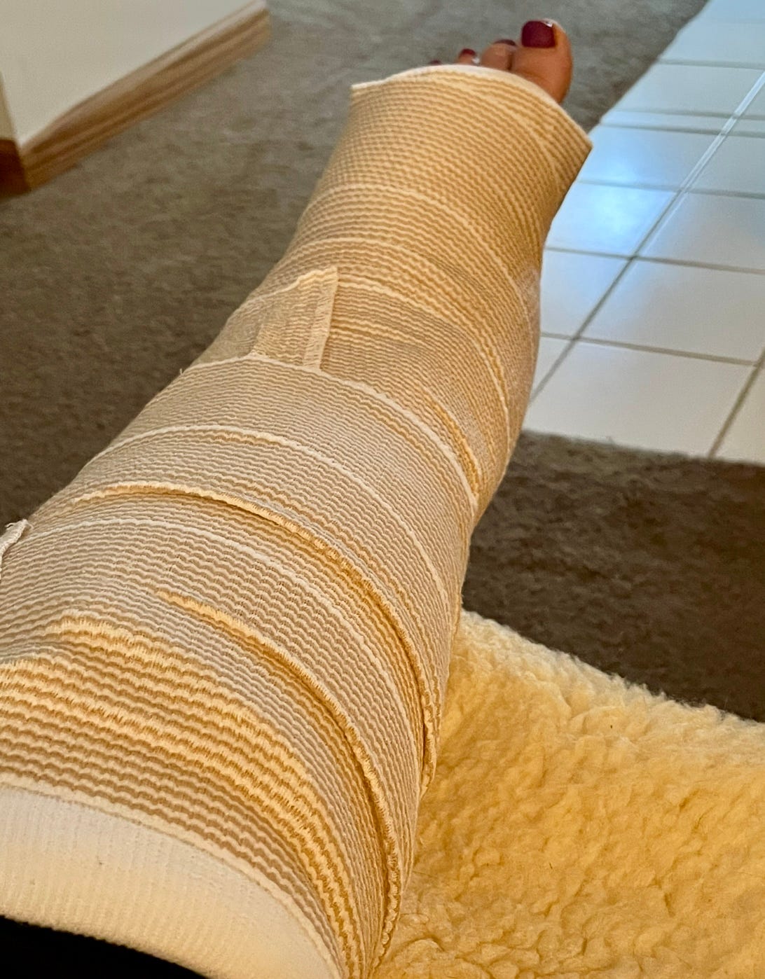 My good fortune didn’t last long. At the very end of that otherwise lovely vacation, I broke my ankle. I wish I could say I did it while surfing or hiking or doing something athletically demanding. But no. At 10 pm on the night before we left, I attempted to step off a curb into my husband’s truck while holding two cups of rapidly melting ice cream—one in each hand. I don’t know why I thought I could do it, but I couldn’t. When I stepped back again for leverage, my foot landed on a crack in the concrete and went sideways. For a brief moment, I thought I could right the ship, but then, down I went, ice cream and all, straight down in a heap on my turned ankle. It was pretty ugly. Both “knobs” of my left ankle were broken—the side against the curb was in pieces—and I needed plate-and-screw surgery to repair it six days later. Ugh.